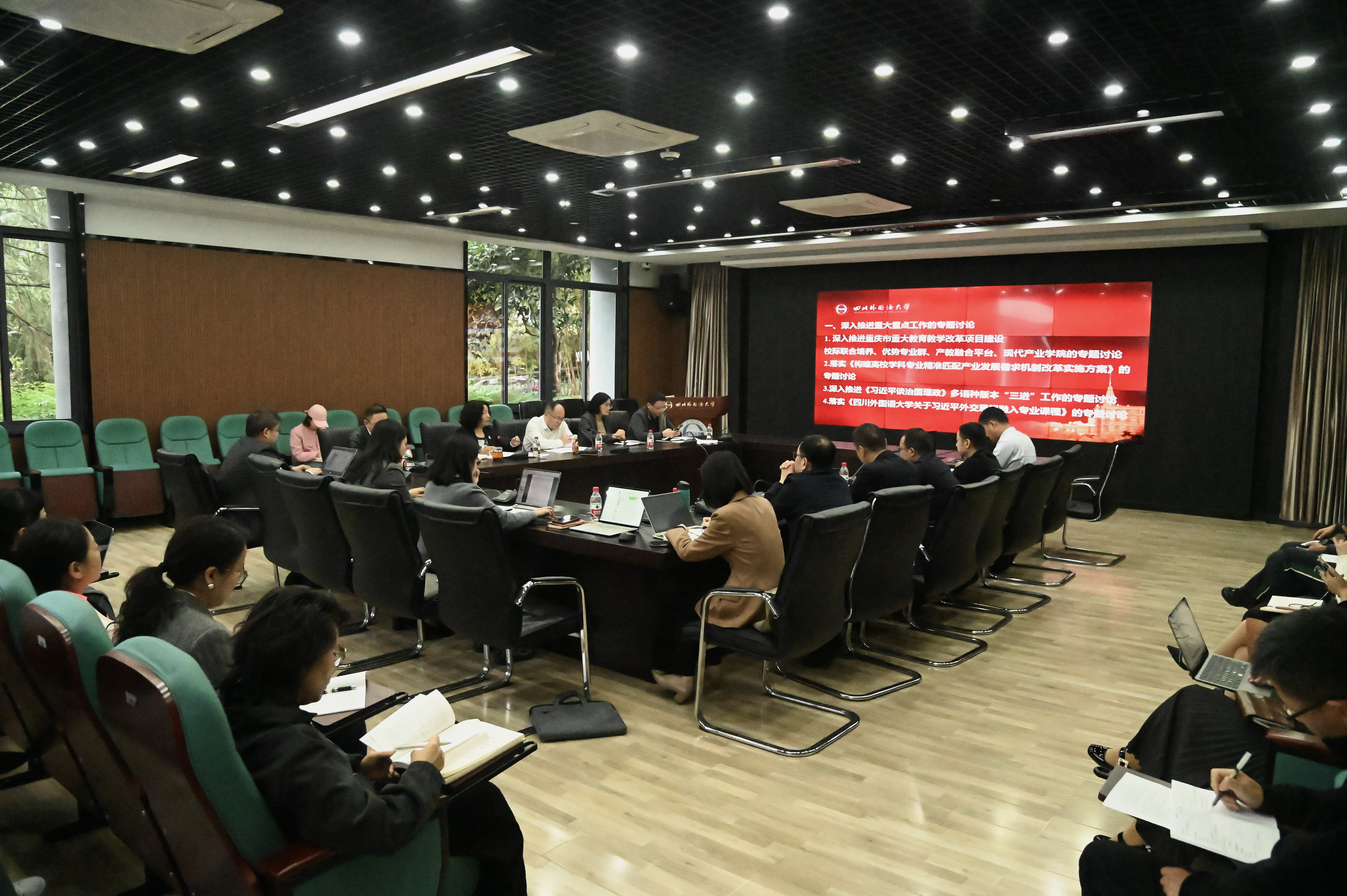 刘玉梅围绕四个方面组织专题讨论:深入推进“四跨”创新育人模式、优势专业群、新型学院等重大教育教学改革项目建设、落实《构建高校学科专业精准匹配产业发展需求机制改革实施方案》、持续推进《习近平谈治国理政》多语种版本“三进”等相关工作。她充分肯定学校在产业学院建设、优势专业群打造、“三进”工作推进等方面取得的阶段性成果,并就下一阶段以新文科迭代升级和数智赋能为牵引的本科教育教学建设重点任务作出系统安排。