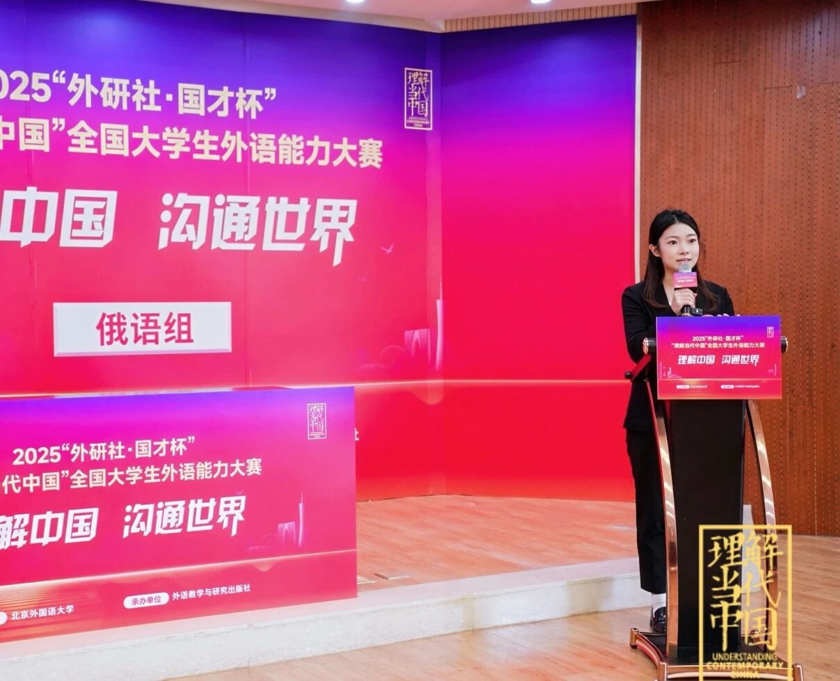 作为川外的传统优势领域,语言类赛事覆盖阿拉伯语、韩语、德语等10余个语种,国家级奖项占比超60%,多个成果跻身全国顶尖水平。在外研社・国才杯“理解当代中国”系列赛事中,英语学院石秀文在英语组口译赛项中斩获国赛金奖;俄语学院彭琭琪获俄语组国赛银奖,东方语言文化学院王润雪、法语学院高睿麟、西方语言文化学院王慧霖分别摘得阿拉伯语、法语、西班牙语组国赛银奖,展现出过硬的语言应用能力。我校获得优秀组织单位奖。